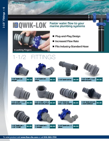1-1/2%u02dd Qwik-Lok straight MA-150 1-1/2%u02dd Qwik-Lok elbow MA-1511-1/2%u02dd 12 UNF %u00d7 1-1/2%u02dd Qwik-Lok male MA-286 1-1/2%u02dd Qwik-Lok male %u00d7 male adapter MA-2811-1/2%u02dd Qwik-Lok tee MA-2881-1/2%u02dd Qwik-Lok male %u00d7 male bulkhead MA-2821-1/2%u02dd Qwik-Lok %u00d7 1-1/2%u02dd 12 UNF MA-2891-1/2%u02dd 12 UNF %u00d7 1-1/2%u02dd Qwik-Lok male, elbow MA-2871-1/2%u02dd 12 NPT %u00d7 1-1/2%u02dd Qwik-Lok male MA-2851-1/2 FITTINGS1-1/2%u02dd Qwik-Lok %u00d7 1%u02dd straight MA-292 1-1/2%u02dd Qwik-Lok %u00d7 1%u02dd elbow MA-293%u00ae6 1-1/2%u02dd Fittings %u2022To order product visit www.flow-rite.com or call 616-583-1700